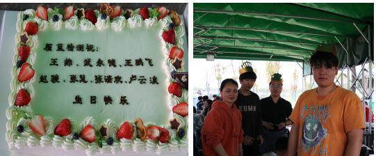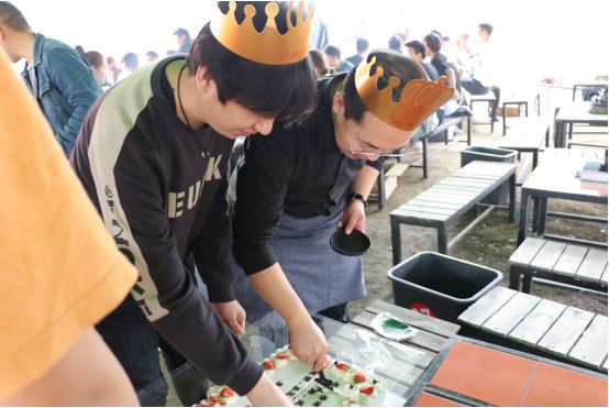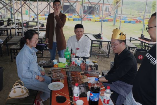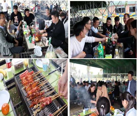 中午時分,我們轉戰燒烤區域,還沒等火生好,小伙伴就已經按耐不住了,早早的圍在桌邊等待燒烤。公司還為四月份過生日的同事準備了生日驚喜,全場唱起生日歌,一起切蛋糕正式開始我們的燒烤之旅。