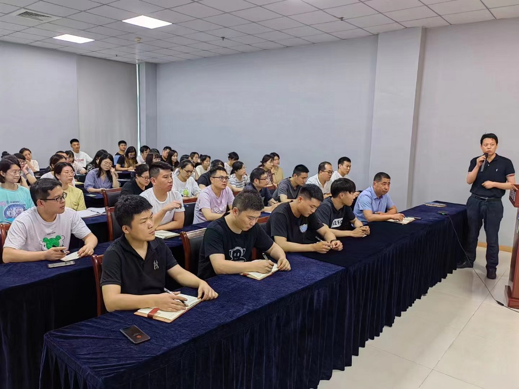 總經(jīng)理張布偉開展了《生態(tài)環(huán)境法律、法規(guī)體系和檢測(cè)工作基本要求》為主題的2022年度雁藍(lán)講堂第一課。